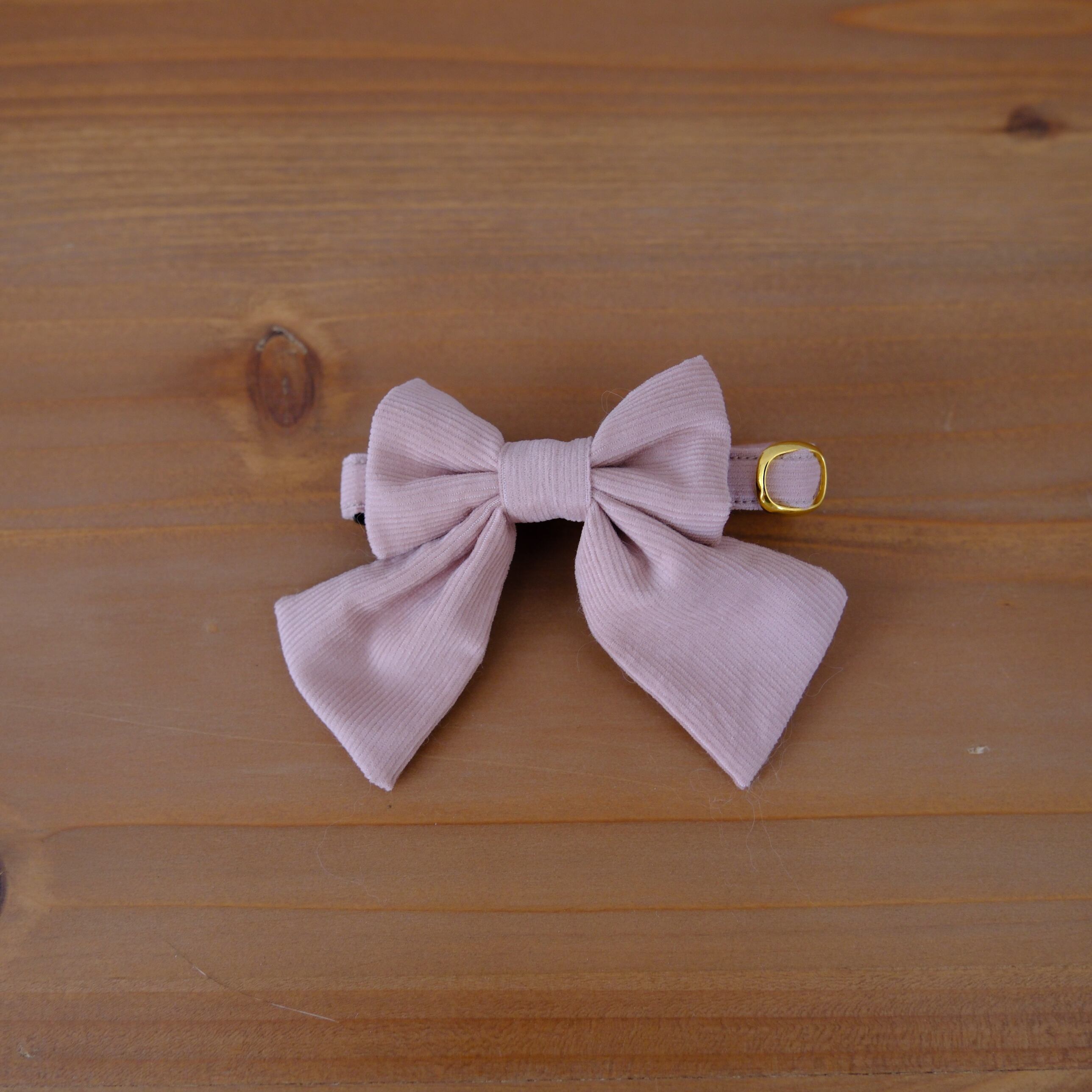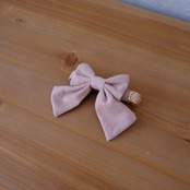 スモークピンクのコーデュロイを使用したお洒落リボンです